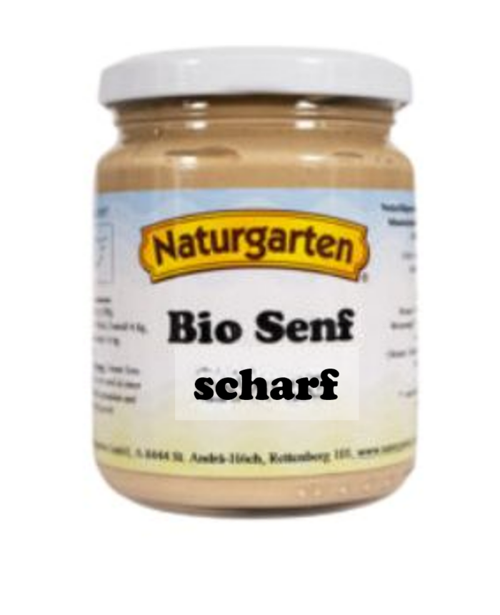 NATURGARTEN Bio Senf scharf ist ein würziger, naturbelassener Senf. Er ist sowohl vom Geschmack, als auch von der Auswahl der Zutaten einzigartig. Nur die allerbesten Zutaten finden hier Verwendung. Sie werden in einer Steinmühle vermahlen und im Holzfass gereift.