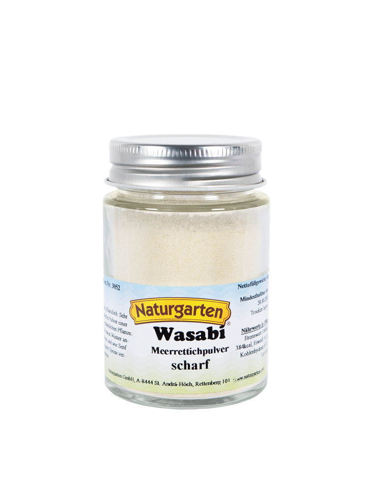 Wasabi Pulver ist ein sehr scharfes Pulver aus Meerrettich (Kren) und Wasabipulver.